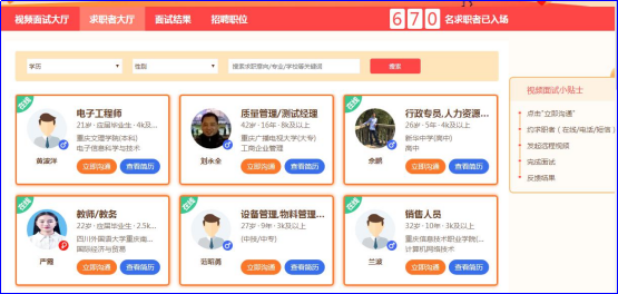 1.企业可在双选会开始之前发布职位并收取学生简历,但只在双选会当天9:00-17:00可以和学生进行在线沟通和视频面试。