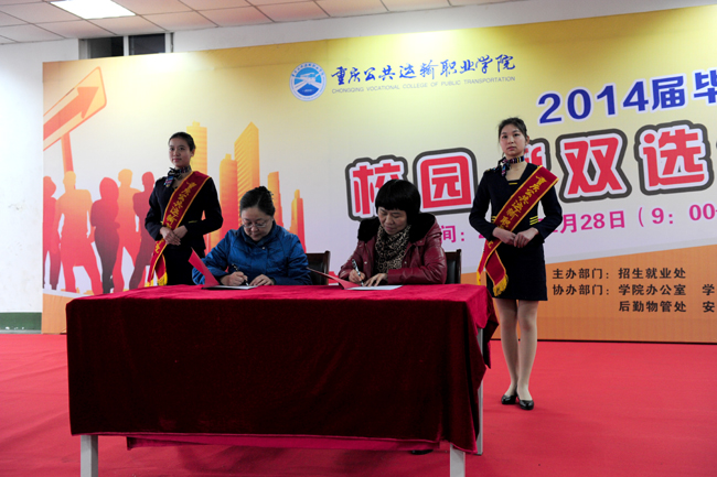 首场双选会现场气氛热烈,重庆市公共交通控股(集团)有限公司、重庆市铁路(集团)有限公司等单位,受到了毕业生职者的青睐。同学们纷纷将个人简历投递给心仪的招聘单位,详细展示个人基本情况,现场咨询并接受用人单位的初步面试。此外,在本次双选会上,我院还与重庆公交集团签订了校企合作协议;重庆轨道集团也与近百名轨道专业毕业生现场签订了就业协议。