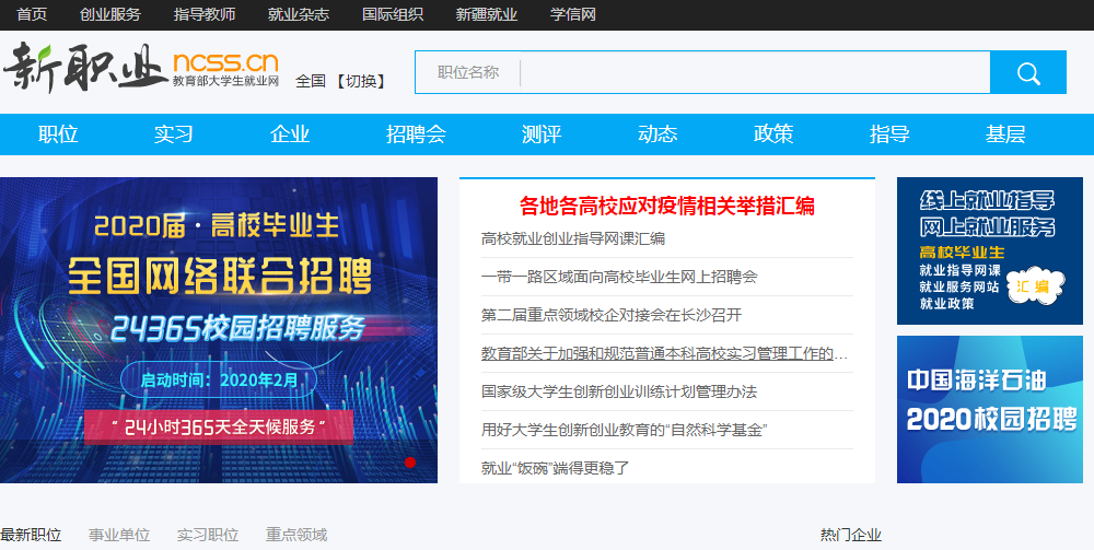 为贯彻落实习近平总书记在统筹推进新冠肺炎疫情防控和经济社会发展工作部署会议上的重要讲话及系列指示批示精神,认真落实国务院常务会关于鼓励吸纳高校毕业生就业的工作部署,2月28日,教育部启动“2020届高校毕业生全国网络联合招聘——24365校园招聘服务”活动,为各个高校毕业生提供每天24小时全年365天的网上校园招聘服务,毕业生可登陆活动平台(www.ncss.cn)及各有关网站专栏参加求职招聘。